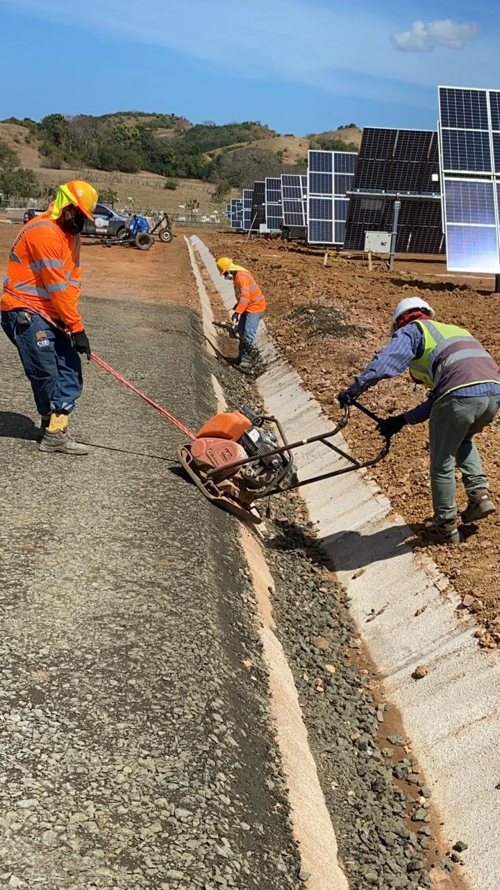 Realizamos los trabajos de confección las calles internas de las plantas solares, y el proceso de pavimentación de las mismas, con el fin de establecer caminos de acceso adecuado a los diferentes paneles.
